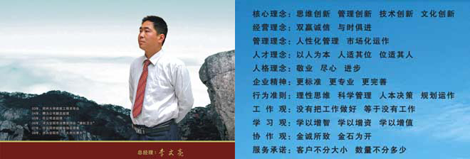 公司(企業)自成立以來,本著為用戶創造價值,為企業創造利潤,為社會創造財富的精神,不斷吸收先jin的企業管理經驗。始終堅持“以人為本,誠信經營”的企業宗旨和“質量、效益、創新、發展”的核心經營管理理念,充分發揮企業特長和先jin的現代化水泥企業管理經驗,在市場運作當中,以良好的服務博得社會各界的認可和好評。